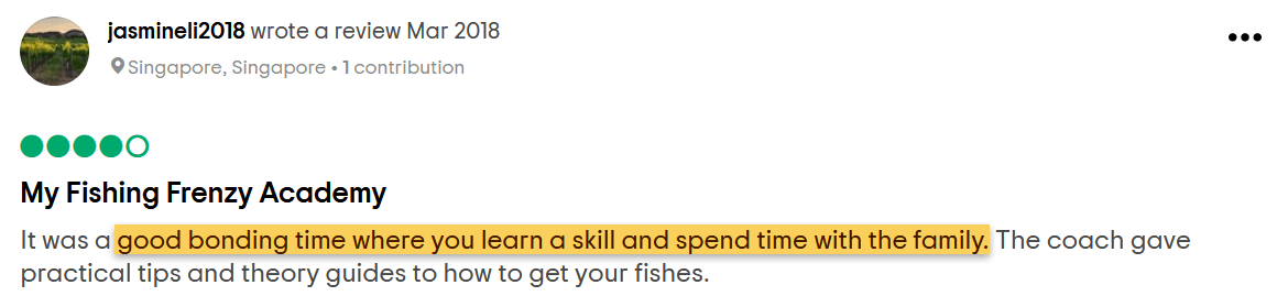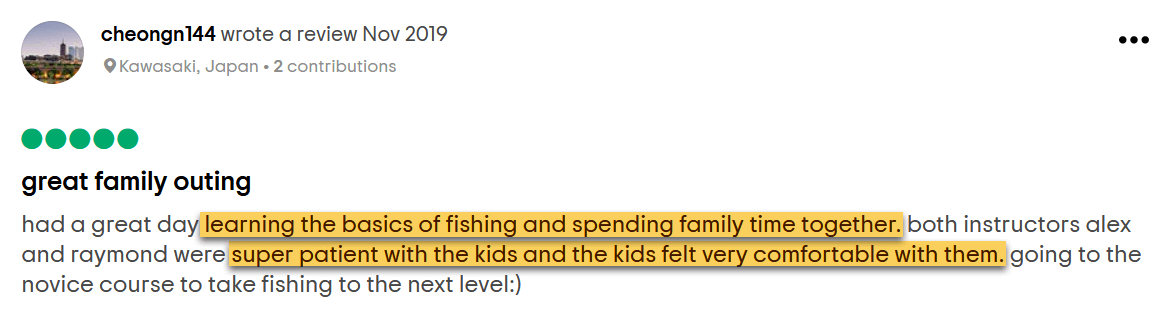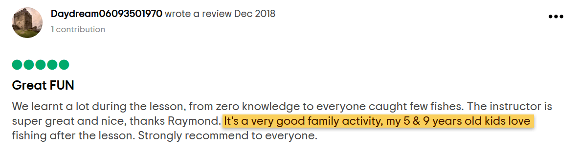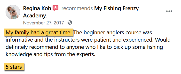 "It's a very good family activity, my 5 & 9 years old kids love fishing after the lesson." -Father of 2 kids