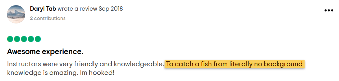 "To catch a fish from literally no background knowledge is amazing. I'm hooked!"