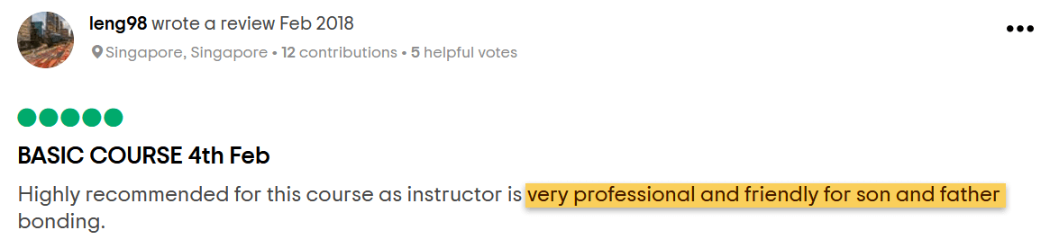 "Instructor is very professional and friendly for son and father bonding."
